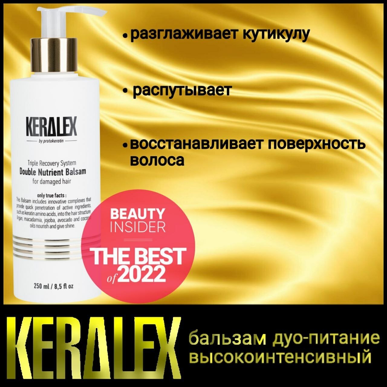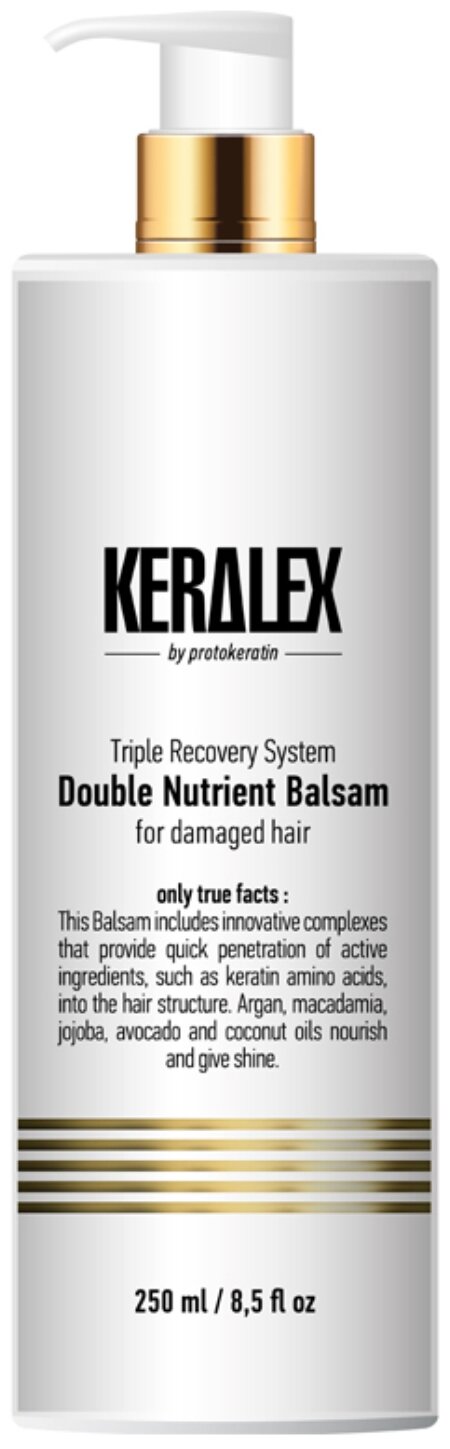 Интенсивный питательный бальзам Keralex Double Nutrient Balsam включает инновационные комплексы, которые обеспечивают быстрое проникновение активных ингредиентов, таких, как аминокислоты кератина, в структуру волос.