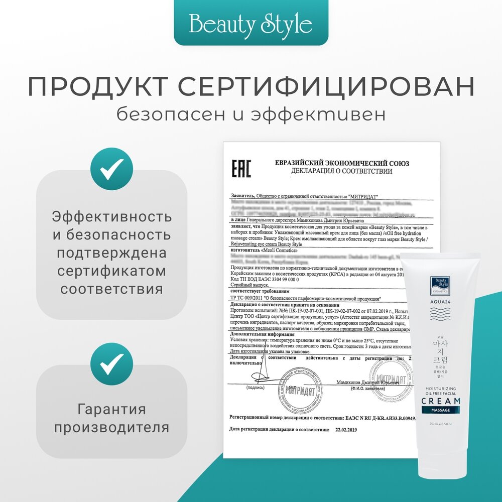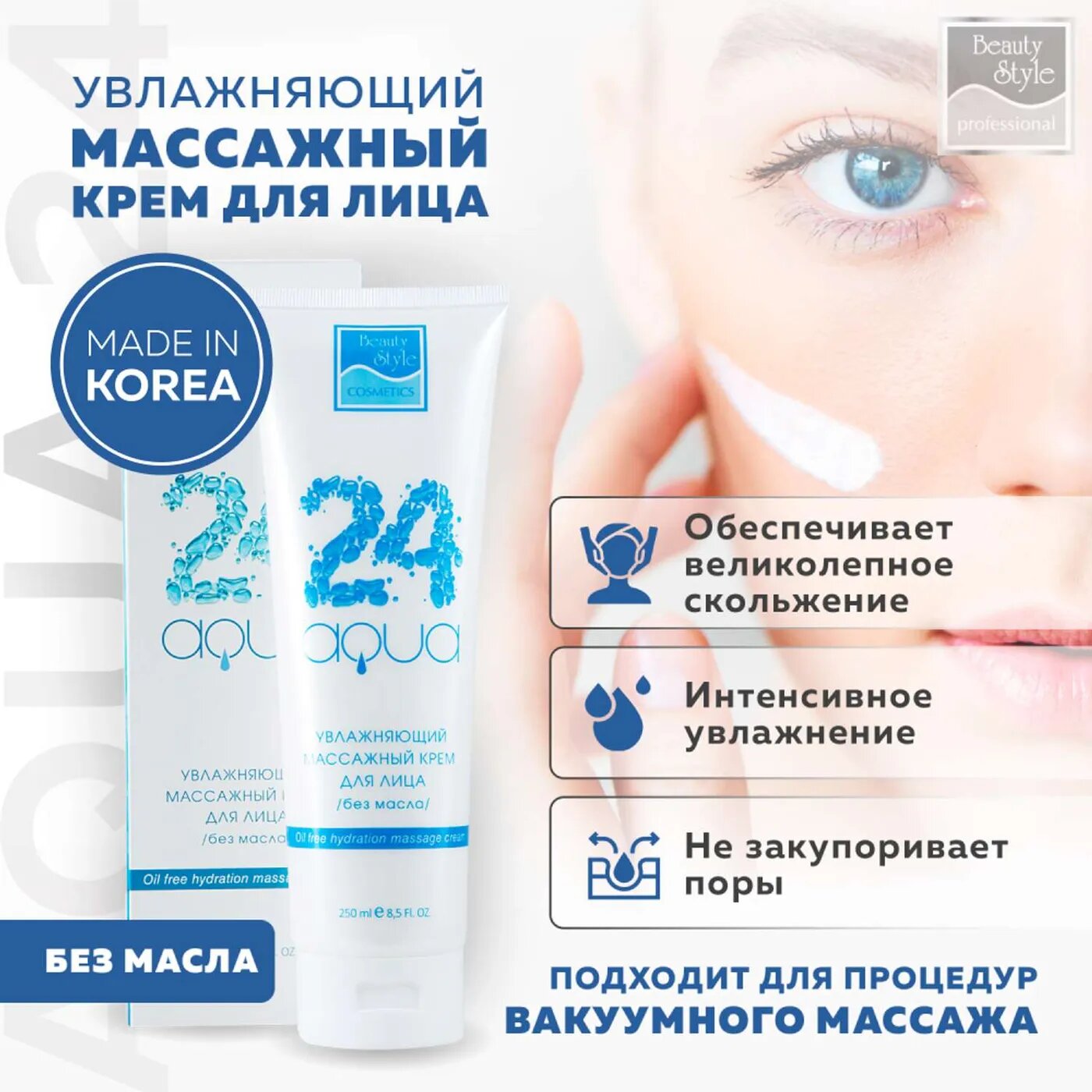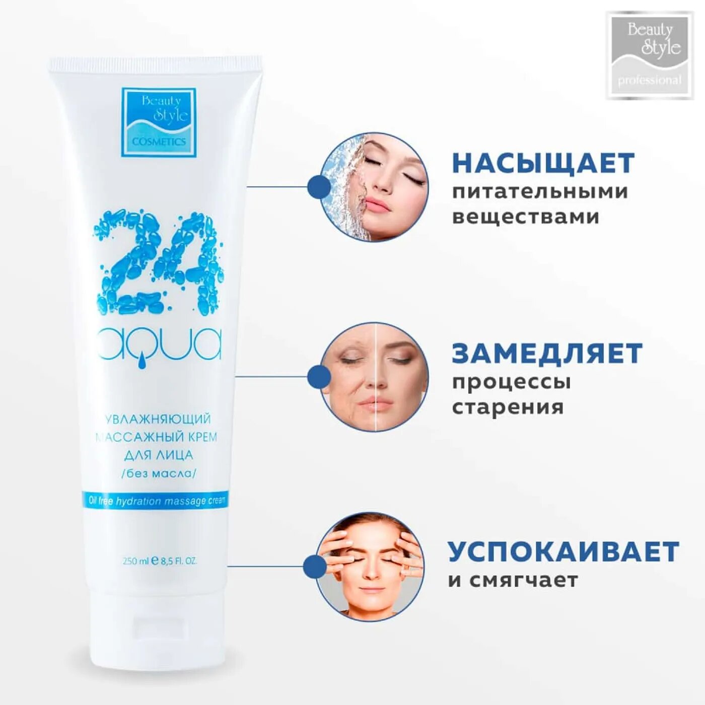 Beauty Style Увлажняющий массажный крем для лица без масла Аква 24 250 мл (Beauty Style ) (GEZ4515706K)