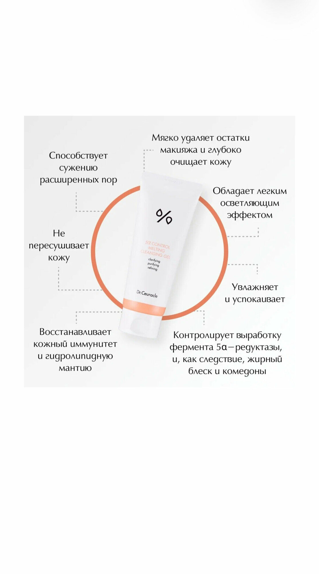 | Полное описание | Гель для умывания Dr.Ceuracle 5αControl Melting Cleansing Gel прекрасно заменит вам сразу два средства гидрофильное масло и пенку для очищения. Формула “gel to foam”мягко удаляет остатки макияжа, кожного сала и других загрязнений. Не требует смывания дополнительными средствами. Прозрачная, вязкая и гелевая текстура легко распределяется по коже и эмульгируется без использования воды. Подходит для чувствительной, пораженной акне, жирной, проблемной кожи, обезвоженной кожей. |