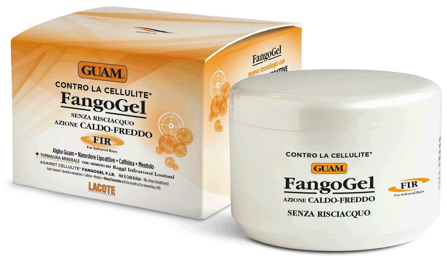 | Активные компоненты | Фитоэкстракт и пудра водорослей GUAM (ламинария), Липоактивные Наносферы с экстрактом Кокколоба, липосакционин (acetyl cyclohexapeptide-34), микронизированный черный турмалин, кофеин, каолин, масло карите, Siloxanetriol, контрастный комплекс тепло/холод, метилникотинат + эфир плодов ванили + ментол + метиллактат. |