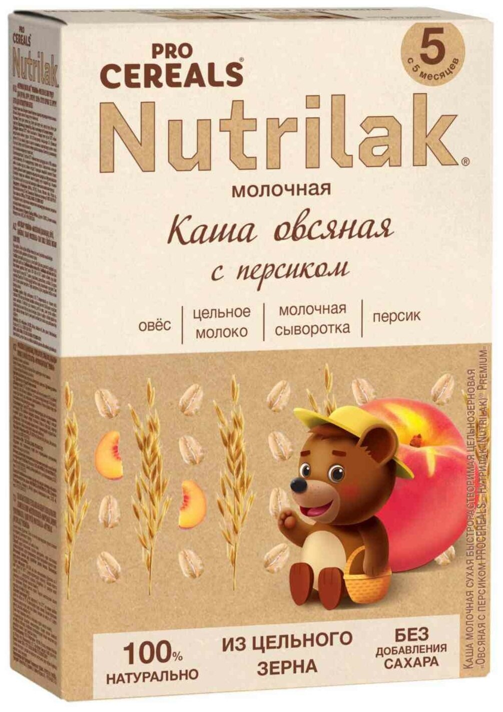 Каша овсяная с персиком Nutrilak Premium Pro Cereals цельнозерновая молочная разработана с использованием принципа " Чистая этикетка" :