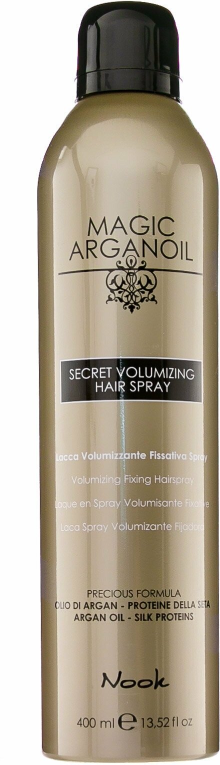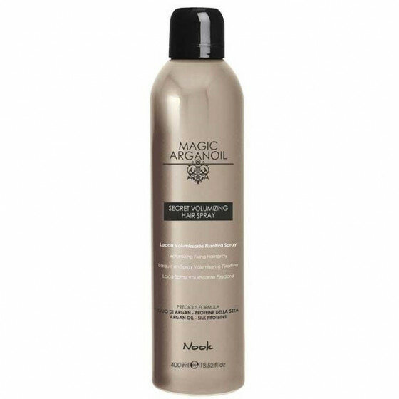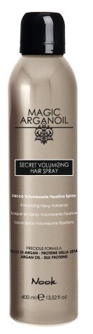 Лак для объема Nook Magic Arganoil Secret Volumizing разработан на основе арганового масла, шелковых протеинов и солнцезащитных фильтров. Средство предназначается для фиксации укладки, оно придает волосам потрясающий объем, без утяжеления прядей. Препарат возвращает волосам утерянный тонус, дарит им упругость и эластичность, защищает прическу от воздействия повышенной влажности. Лак быстро высыхает, не оставляя липких следов.