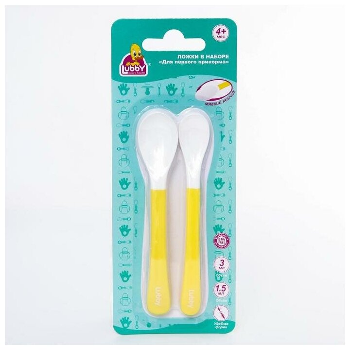 Размер и глубина ложек идеально подходят для детей, которые кушают самостоятельно и для совсем маленьких деток, которым только вводится прикорм. Маленькая ложечка идеально подойдет в качестве самой первой ложки. Длинная ручка разработана специально для баночного пюре. Большая ложечка подойдет для детишек постарше, которые только начали самостоятельный прием пищи.Благодаря специальному мягкому материалу кончика обе ложечки абсолютно безопасны для ребенка. В то же время ложки упругие и отлично держат форму. Фруктовые соки, пюре (например, морковное) или чай могут окрасить кончик ложечки, что не влияет на качество изделия. Если у Вас окрасился кончик ложечки, воспользуйтесь соком лимона. Сок лимона - это натуральный продукт, который поможет удалить пятна. После этого обязательно промойте ложку с мылом и тщательно ополосните под струей проточной воды.* Рекомендованный возраст: с 4 мес.* Состав: полипропилен (PP)* Срок службы: 1 год