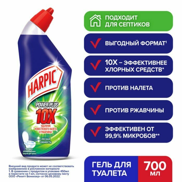 Средство для чистки унитаза Harpic Power Plus Лесная свежесть 700мл RECKITT BENCKISER