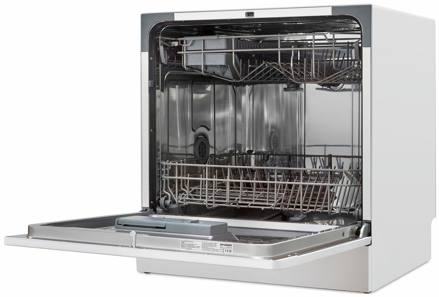 Посудомоечная машина Hyundai белый, компактная, максимальная загрузка 8 комплектов, защита от протечек частичная (корпус)