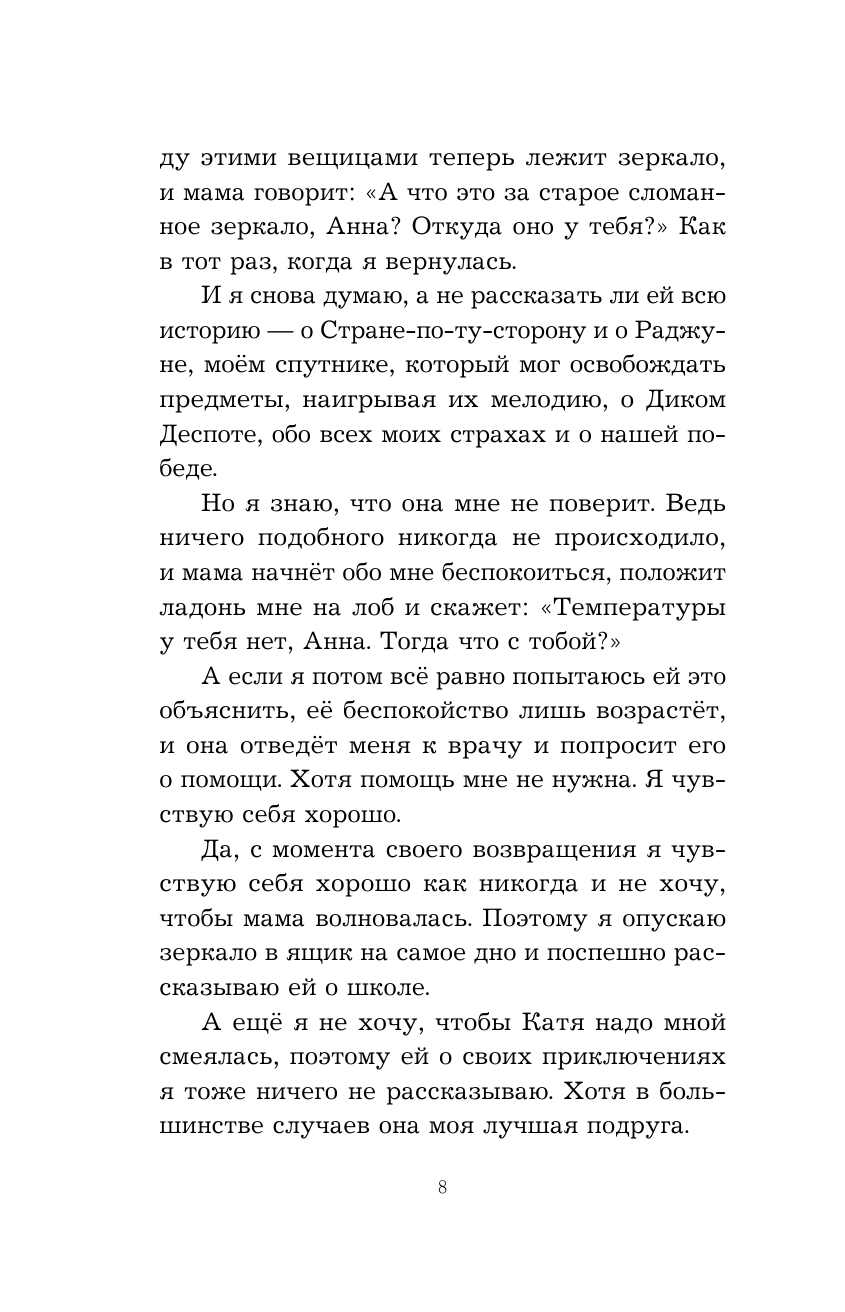 Анна всегда знала, что в ней нет ничего особенного. Она самая обычная девочка из самой обычной семьи. Так почему же именно ей выпал шанс спасти Страну-по-ту-сторону? Это случилось однажды вечером, когда Анна встретила странного кролика. Он принёс ей зеркало, которое оказалось волшебным! Посмотрев в него, девочка попала в Страну-по-ту-сторону. Её жители вот уже много лет страдают от бесчинств Дикого Деспота. Согласно пророчеству, свергнуть его сможет лишь Избранный, пришедший из зеркала. Значит, теперь от Анны зависит не только её собственная жизнь, но и судьба всей страны! Но что, если она очутилась тут по ошибке? Что, если она не Избранная? Получится ли у Анны победить злодея и вернуться домой? Кирстен Бойе – всемирно известная немецкая писательница, обладатель Немецкой молодёжной литературной премии и премии Юнеско. Роман "Тот, кто приходит из зеркала" вошёл в список 7 лучших книг для подростков по версии "Радио Германии".