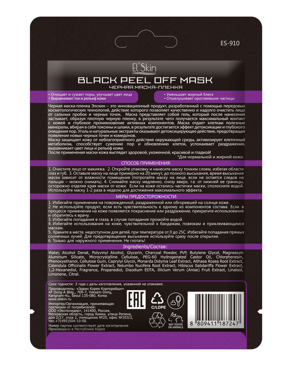 Маска-пленка для лица Elskin ES-910 Черная 10г