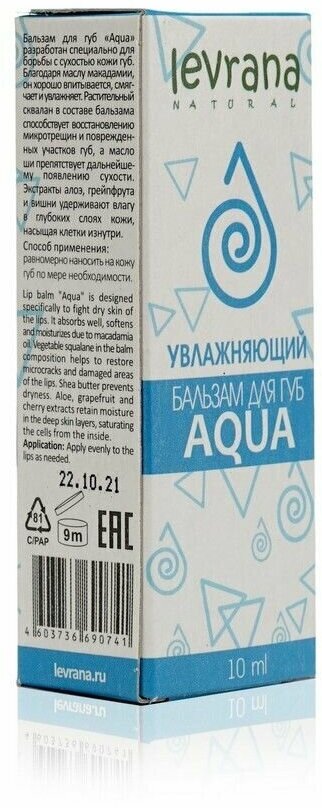 Бальзам для губ Levrana Aqua увлажняющий 10мл