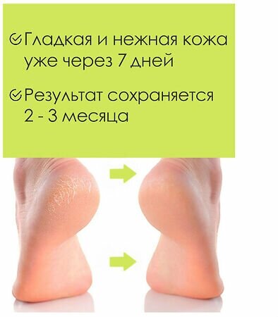 | Особенности | Применение маски-носков вызывает покалывание и приятное чувство тепла. |