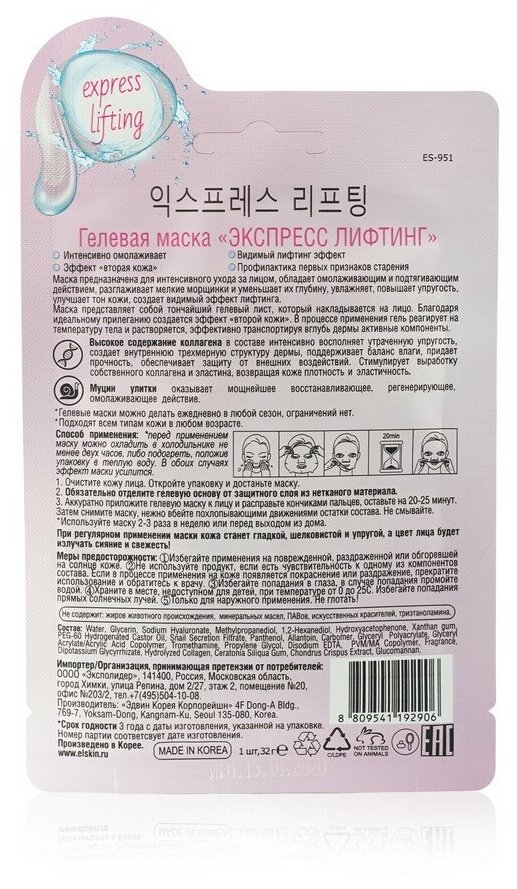 Маска для лица Elskin Экспресс лифтинг гелевая 23г