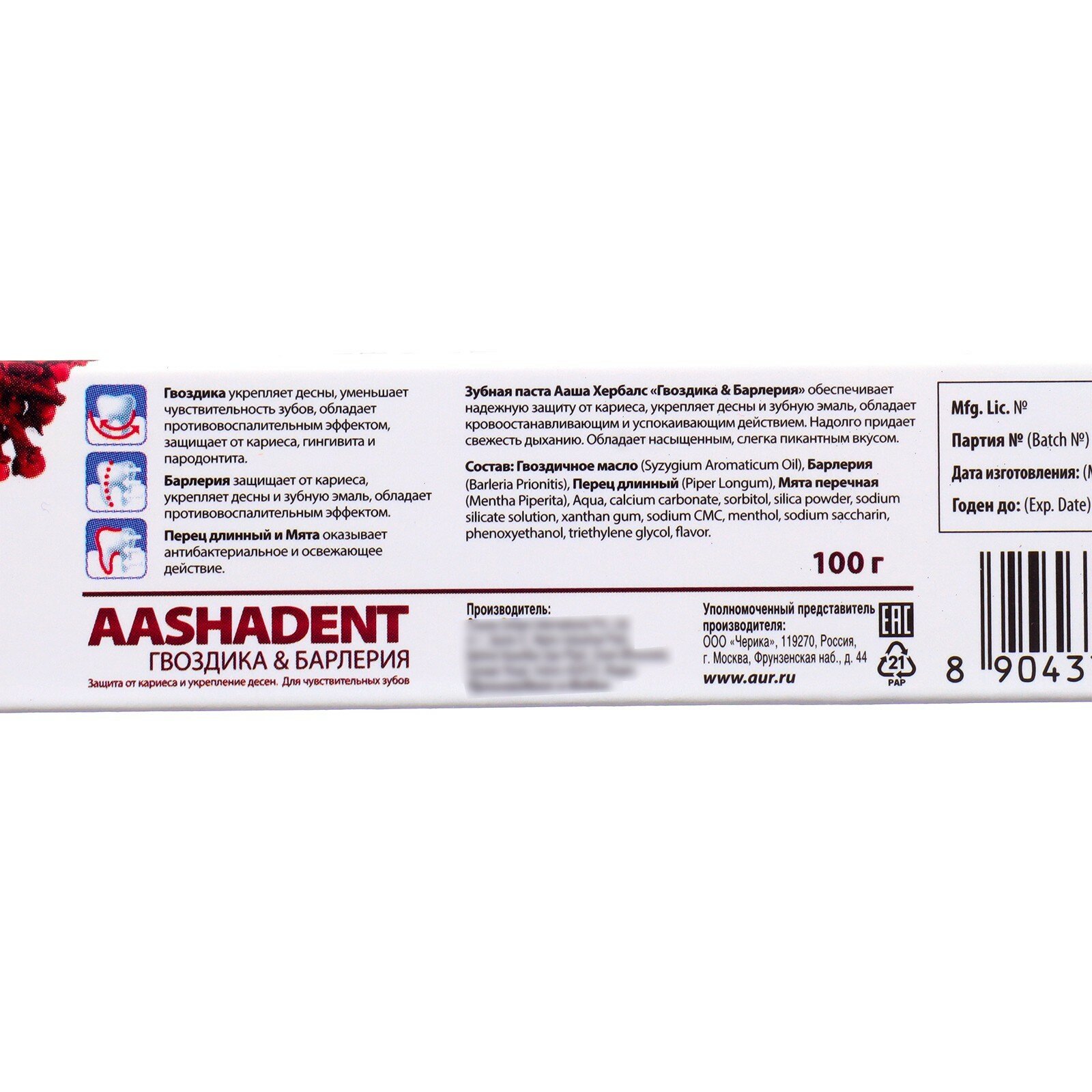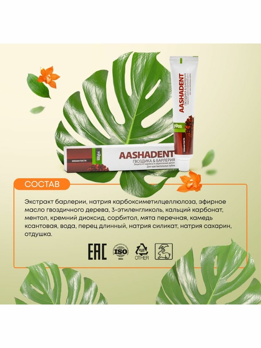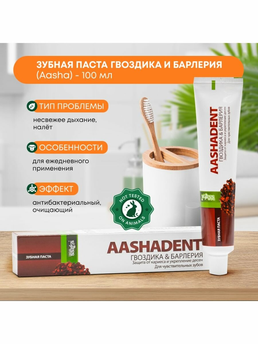 Зубная паста Aashadent Гвоздика & Барлерия 100г Aasha Herbals