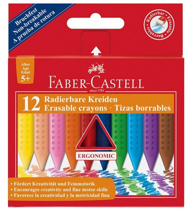 - трехгранные цветные мелки с эргономической областью захвата в дизайне GRIP