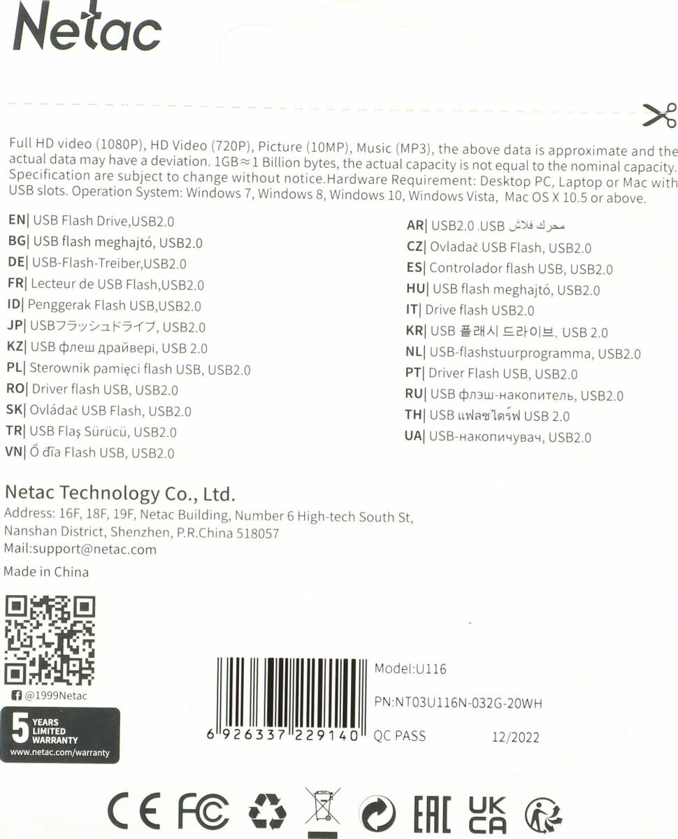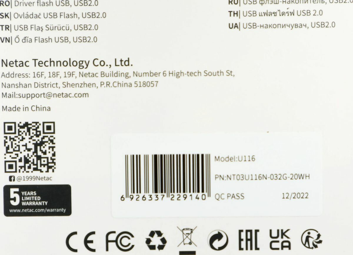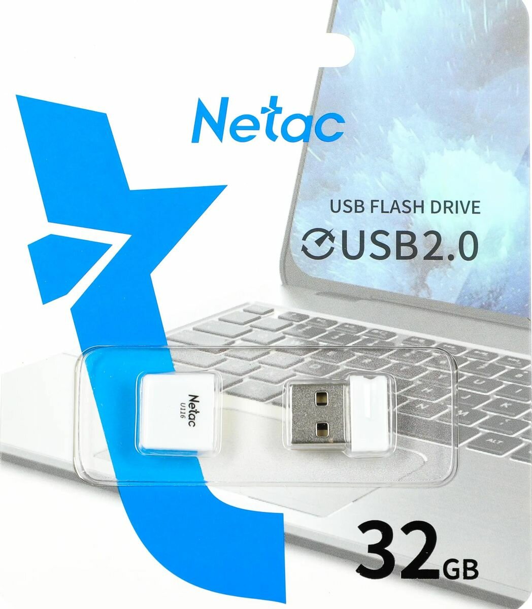 Флешка Netac U116 32Gb USB 2.0 Белый NT03U116N-032G-20WH U116 NT03U116N-032G-20WH 32Gb Белая