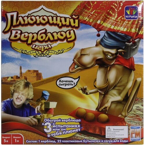 «Забавный верблюд» — это необычная веселая игра для всей семьи. Задача игроков насобирать наибольшее количество бутылочек, выиграв их у верблюда. За каждый правильный ход вы выигрываете бутылочку, но будьте осторожны, если вы ошиблись — верблюд плюнет в вас водой! Иногда верблюду становится скучно и он стряхивает бутылки, тогда первый игрок схвативший ее забирает себе. Настольная игра включает в себя 3 варианта игры: 1. Игра в угадайку. Игрок должен угадать, о какой кнопке думает верблюд.