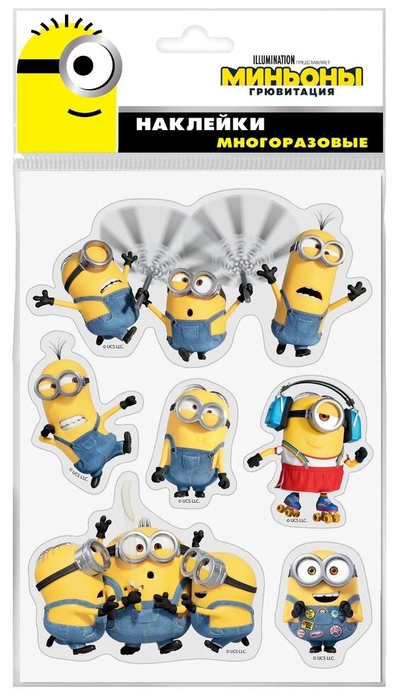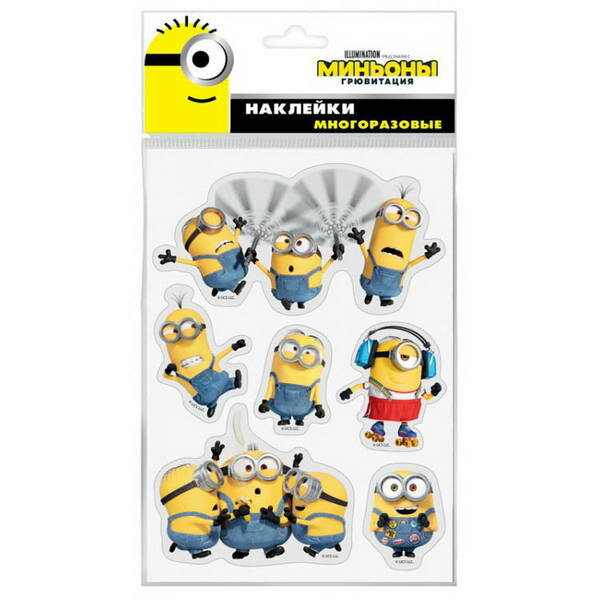 Наклейки с всеми любимыми персонажами - задорными Миньонами. Их забавный вид и яркие эмоции будут радовать обладателей этих наклеек снова и снова. Наклейки изготовлены из упругого полимерного материала и выдерживают многократное приклеивание к различным поверхностям.
