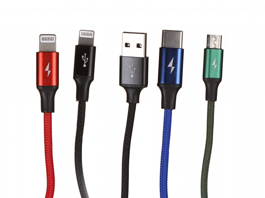 Дизайн 4-в-1, 2 x Lightning 8-контактных порта для зарядки + порт для зарядки Micro USB + порт для зарядки USB Type-C. Поддержка синхронизации данных и зарядки одновременно. Плетёный нейлоновый материал высшего качества, более прочный и долгий срок службы. TPE усиленный разъём, выдерживающий многократные изгибы и засорение. Корпус заглушки из высококачественного алюминиевого сплава, устойчивый к окислению и коррозии.