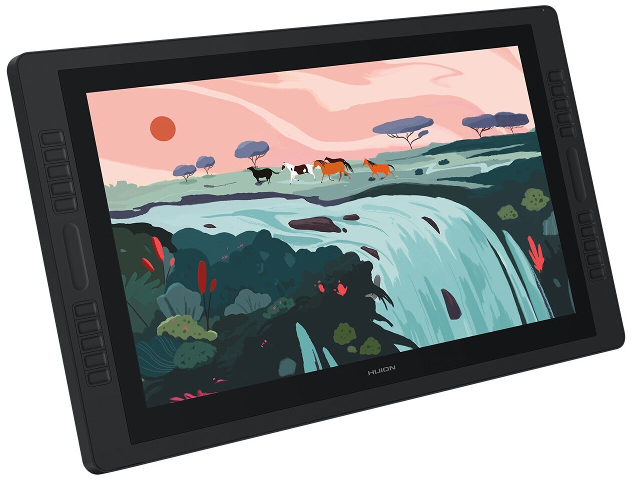 - новинка с самой большой рабочей областью среди всех сенсорных мониторов HUION. Планшет имеет уникальный ламинированный экран с антибликовой износоустойчивой поверхностью с углом обзора в 178 градусов. Такая поверхность минимизирует эффект параллакса и предотвращает повреждение рабочей области при длительном использовании. Скорость отклика 14 мс.
