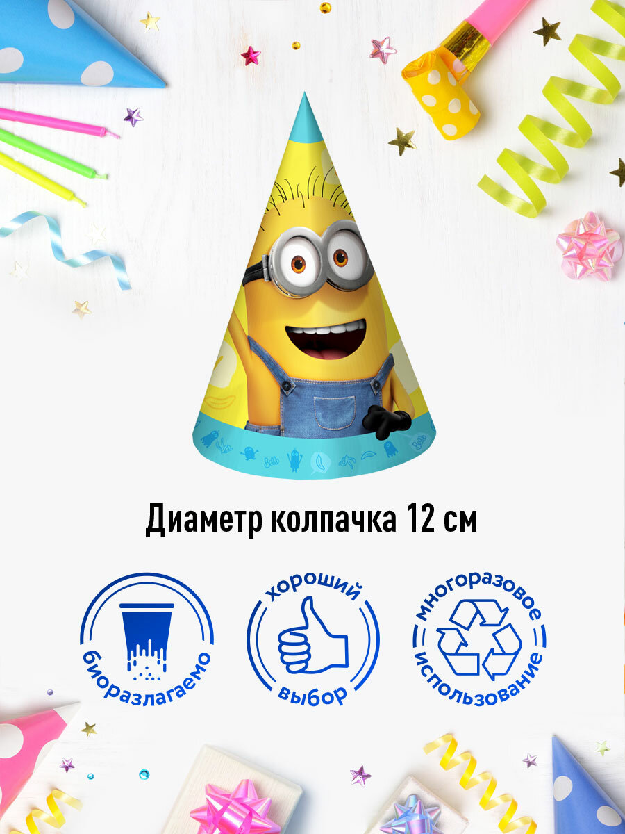 Порадуйте маленького именинника и его гостей забавными праздничными колпачками с изображением миньонов.