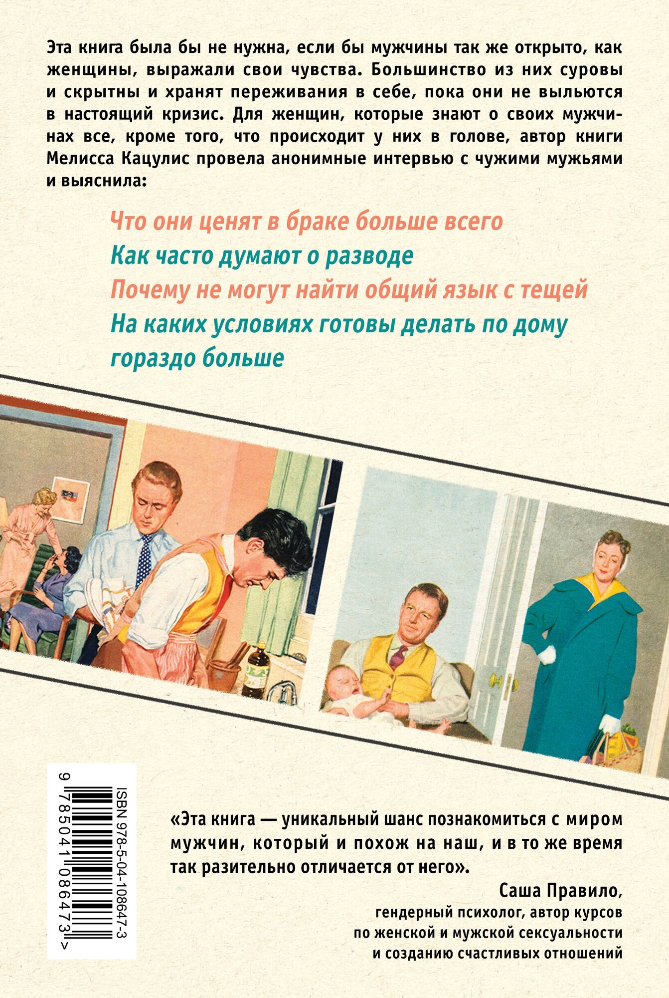 Многие женщины мечтают о настоящем мужчине, герое и защитнике, который, если надо, горы ради них свернет. Он также должен разбираться в цветах и женском парфюме, чтобы не ошибиться с подарком, предугадывать, когда у дамы болит голова, и быть готовым бесконечно обсуждать ее сложные отношения с коллегами — прям как лучшая подружка. Однако реальные мужчины редко совмещают в себе несовместимые качества. А еще они суровы, скрытны, но при этом просты. Из этой книги вы узнаете, что мужчины, молодые и с опытом, женатые и убежденные холостяки, на самом деле думают о любви, сексе и "мужских" обязанностях. Вы познакомитесь с историей института брака, начиная с античных времен и заканчивая XXI веком. И на примере реальных семей увидите, возможно ли справедливое распределение обязанностей по дому и уходу за детьми.