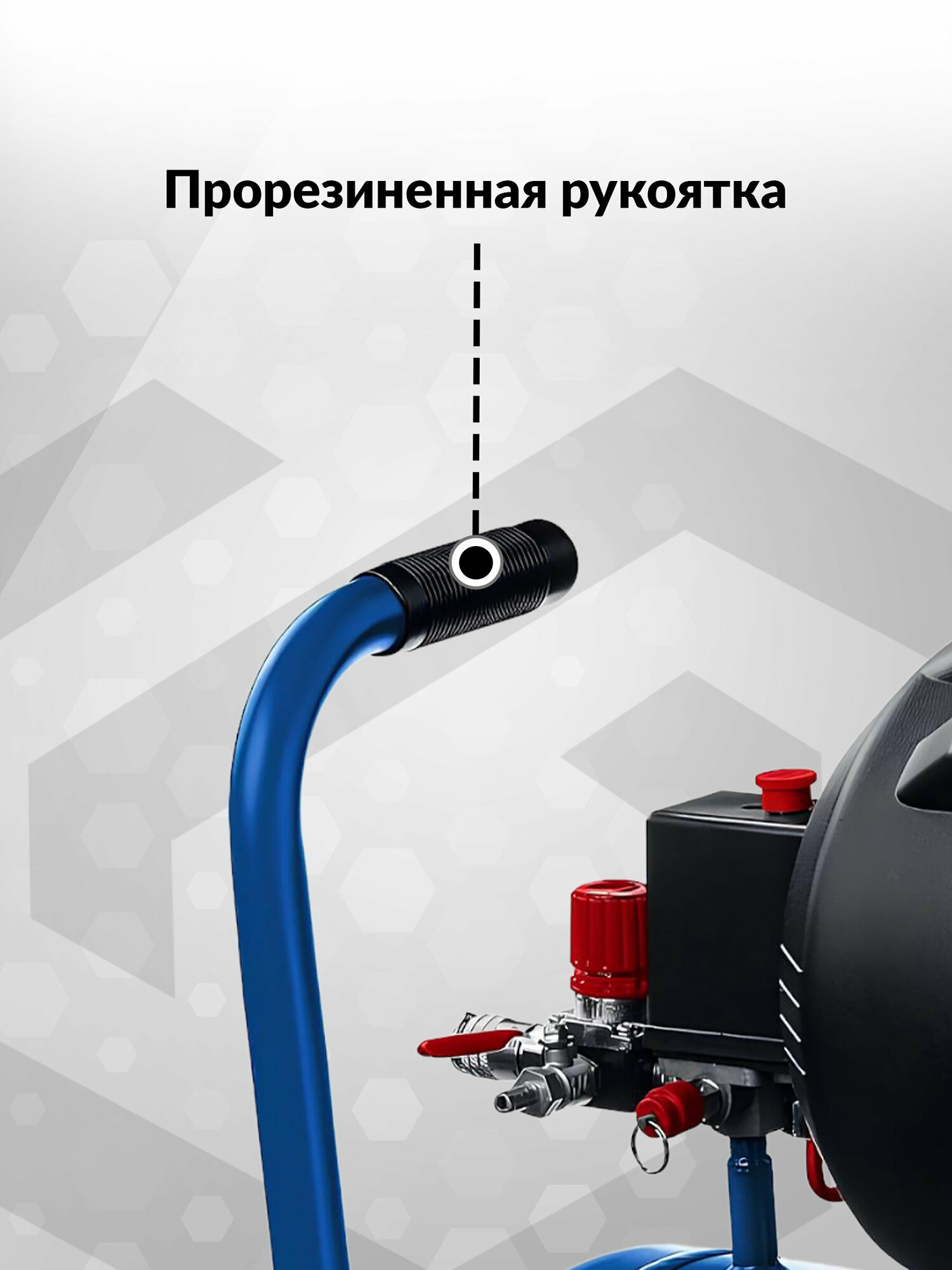 - Высокопроизводительный и мощный компрессор с поршневым типом пневматического механизма и масляным типом смазки