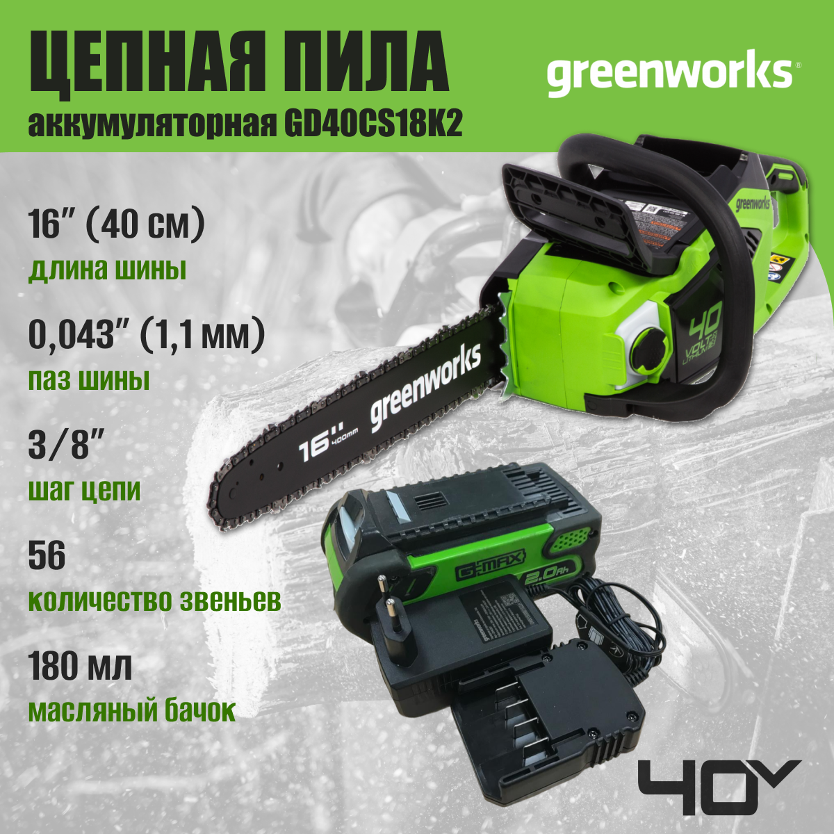 Цепная пила GREENWORKS GD40CS18 [2005807ua]