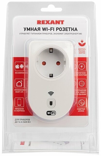 Умная Wi-Fi розетка REXANT позволяет управлять включением/выключением электрических приборов через планшет или смартфон, на любом расстоянии и в любое удобное для Вас время. Вы можете заранее планировать график работы приборов, отслеживать расходы на электроэнергию.