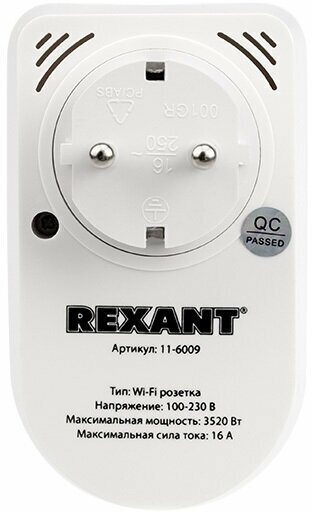 Умная розетка Rexant EU Wi-Fi белый 11-6009