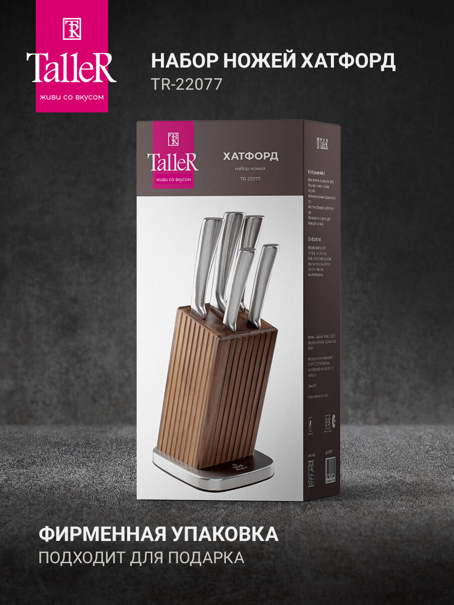 Сервис сравнения цен СкидкаГИД предлагает сравнить цены на товар «Набор ножей кухон. Taller Hertford (TR-22077) компл.:5шт с подставкой дерево/серый карт.коробка»
