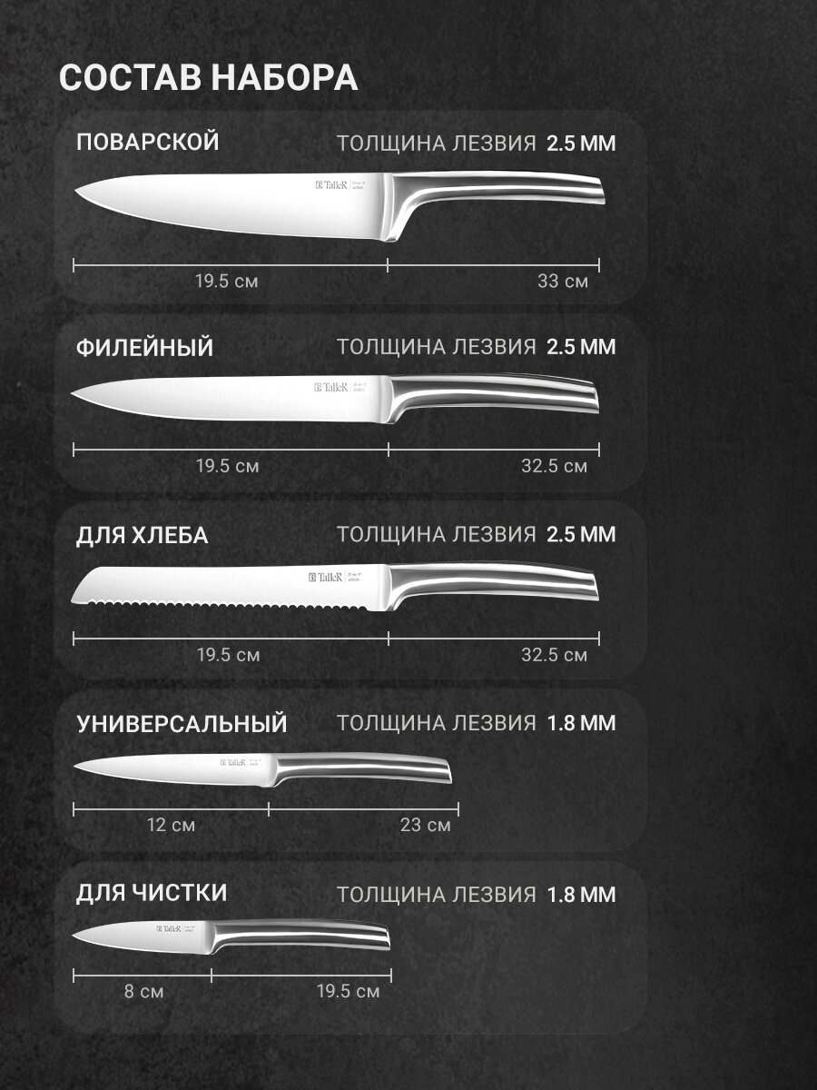 | Количество ножей в наборе | 5 шт |