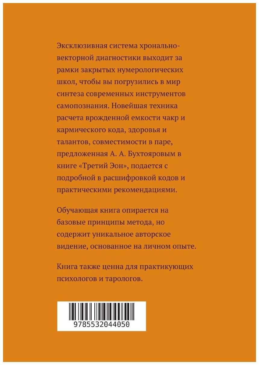 Эксклюзивная система хронально-векторной диагностики выходит за рамки закрытых нумерологических школ, чтобы вы погрузились в мир синтеза современных инструментов самопознания. Новейшая техника расчета врожденной емкости чакр и кармического кода, здоровья и талантов, совместимости в паре, предложенная А. А. Бухтояровым в книге «Третий Эон», подается с подробной в расшифровкой кодов и практическими рекомендациями. Обучающая книга опирается на базовые принципы метода, но содержит уникальное авторское видение, основанное на личном опыте. Книга также ценна для практикующих психологов и тарологов.