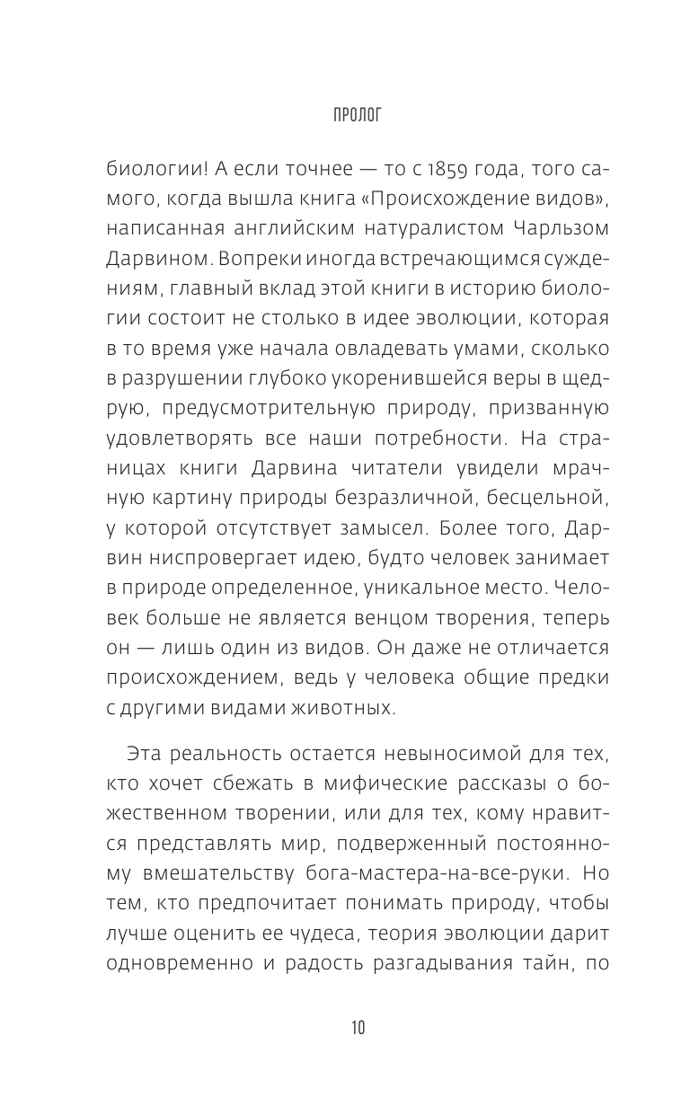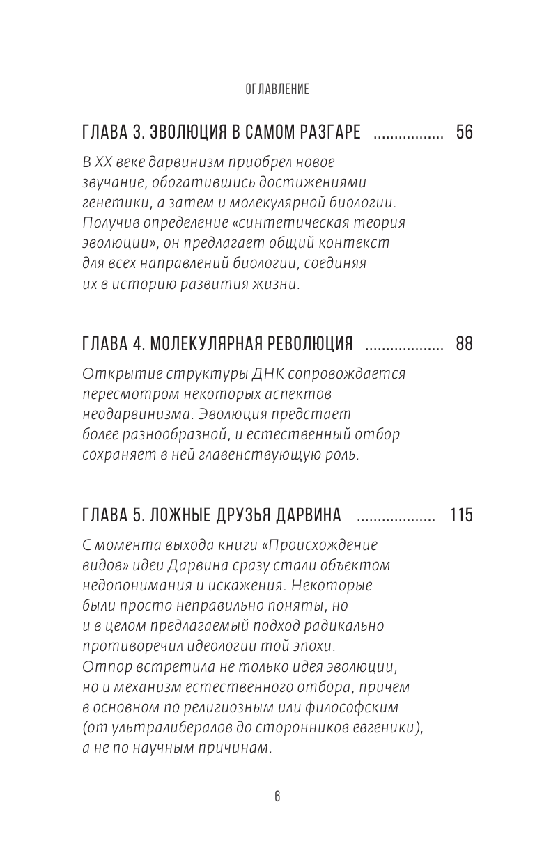 Ясное и очень доступное изложение работ Дарвина, текущего состояния «теории» эволюции (которая больше не является теорией), а также аргументов против данной теории теми, кто ее отрицает. В этой книге автор рассказывает о жизне Дарвина, о том, как он развивал свою теорию. Автор также рассматривает работы Ламарка, автора-натуралиста, которому часто противопоставляется Дарвин. Автор возвращает нас к простым концепциям, но также и к более сложным, таким как молекулярная революция и секвенирование ДНК. Приведены некоторые конкретные примеры, чтобы проиллюстрировать объяснения или опровергнуть неправильные представления. Короче говоря, поучительная и интересная книга, которую нужно прочитать всем!