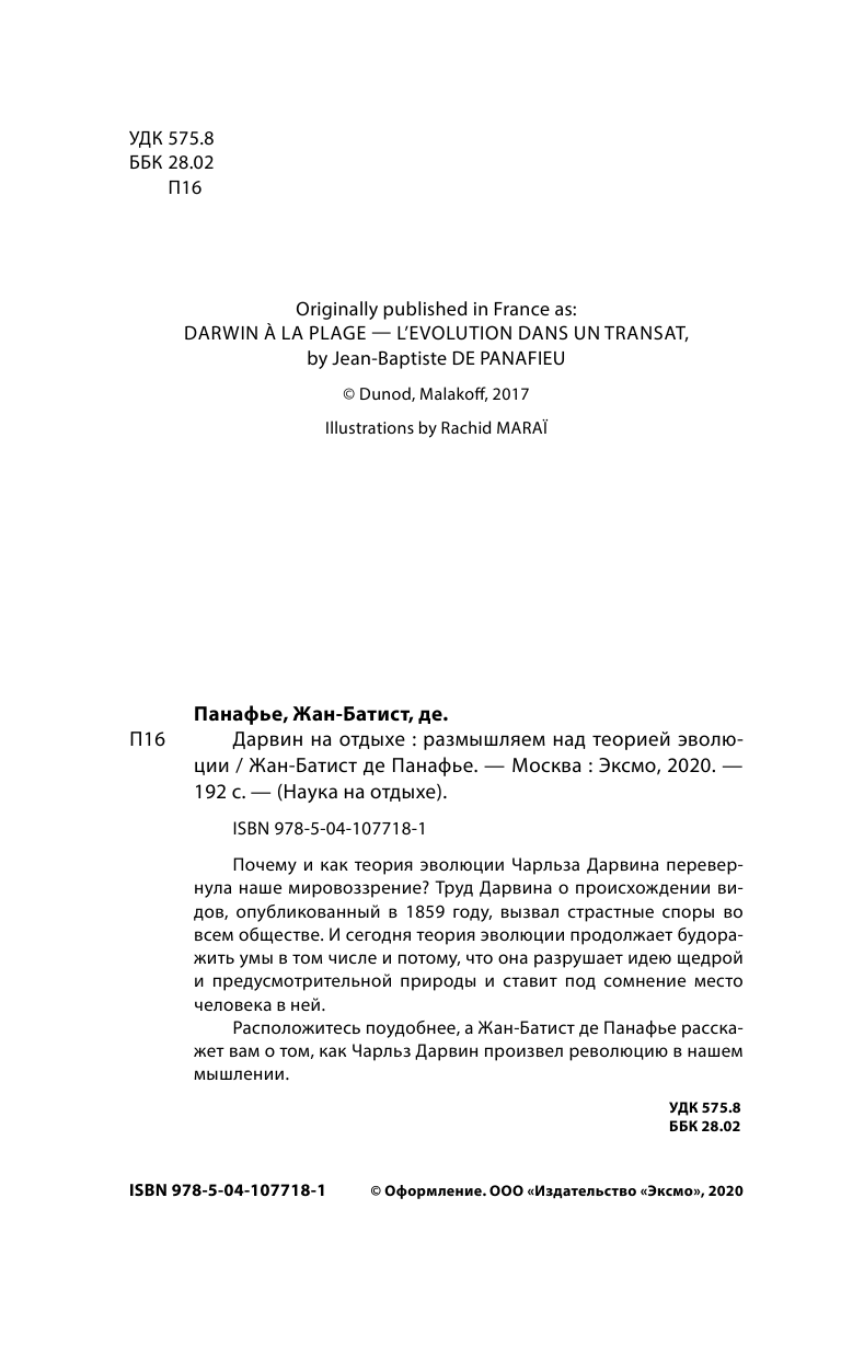Дарвин на отдыхе. Размышляем над теорией эволюции (Жан-Батист де Панафье); ООО "Издательство "Эксмо", 2020