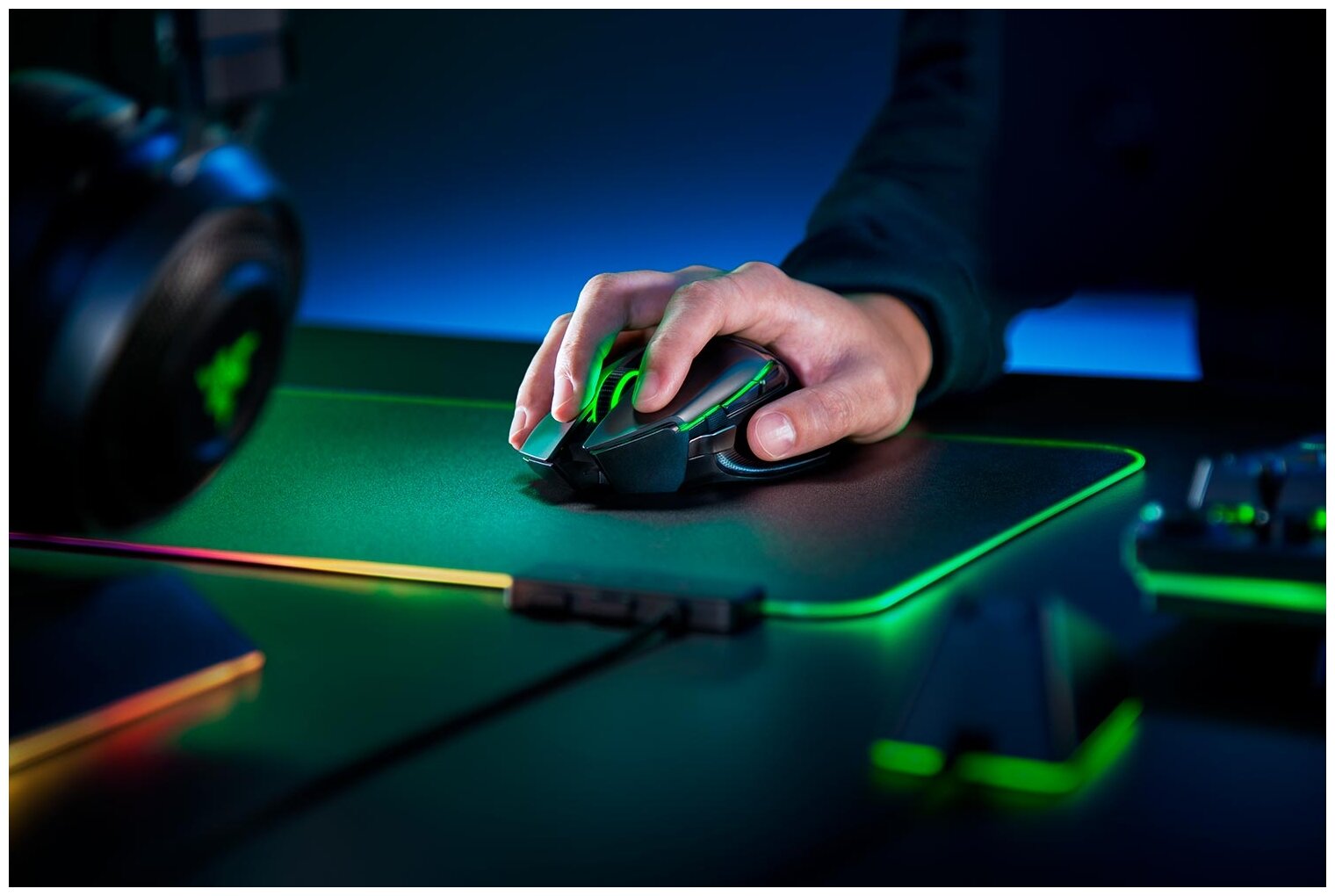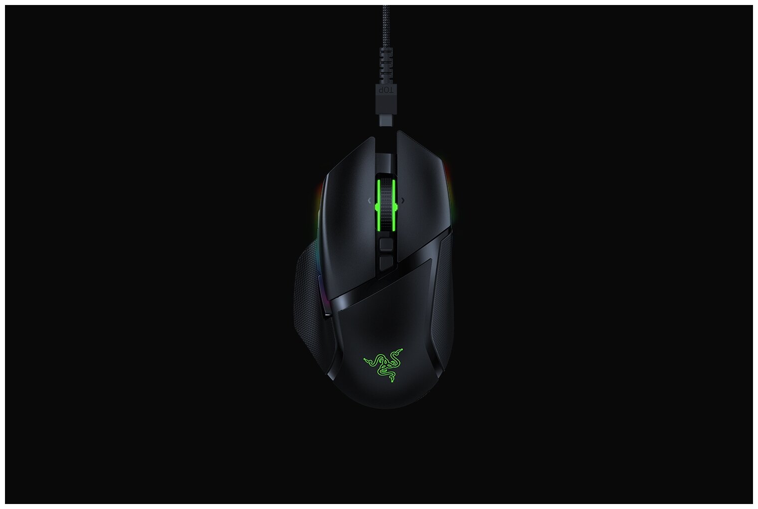 | Дополнительно | 14 зон подсветки Razer Chroma™ с настройкой 16,8 миллиона оттенков цветов Синхронизация подсветки между устройствами Проводной и беспроводной режимы работы Кабель Speedflex длиной 1,8 м для зарядки и использования мыши в проводном режиме Съемная многофункциональная кнопка-лепесток |