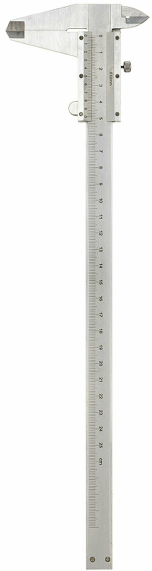 Стальной щтангенциркуль 250 мм с ценой деления 0.1 мм применяется в машиностроении, приборостроении и других отраслях для измерения наружных/внутренних линейных размеров, глубин. Прецизионная обработка обеспечивает высокую точность измерений. При соприкосновении с поверхностью не имеет просветов.
