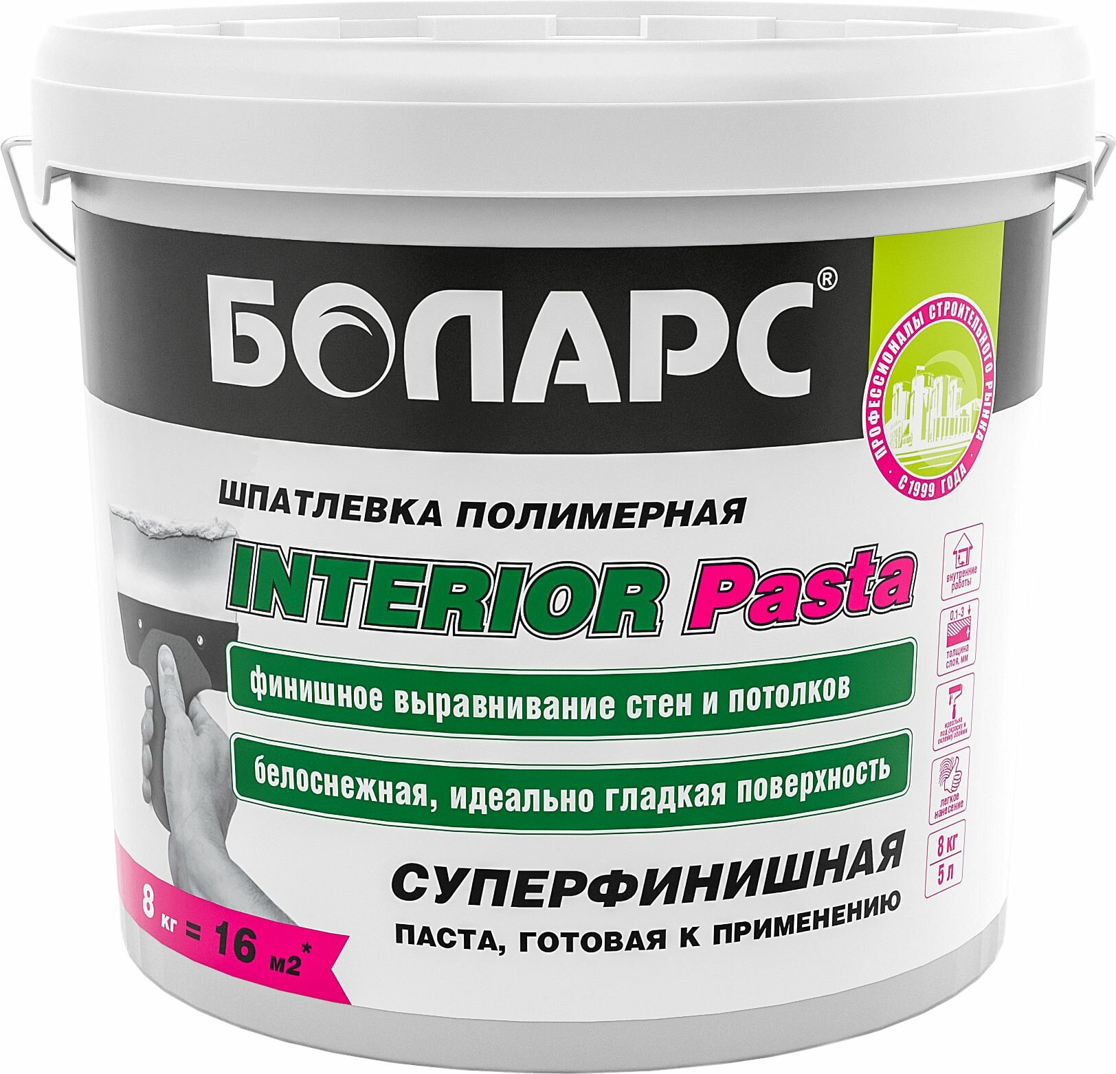 Шпатлевка полимерная БОЛАРС INTERIOR Pasta 8 кг