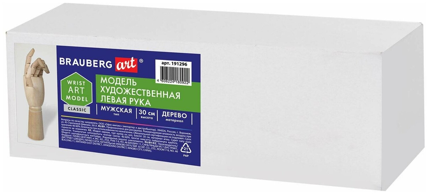 Манекен художественный BRAUBERG ART CLASSIC РУКА высота 30 см мужская левая дерево 191296 Art Classic Манекен Рука мужская левая 30 см