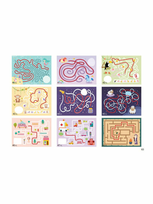 Прекрасная книжка: очень веселые и красочные лабиринты и задания! Много различных шарад и ребусов, ребенок с радостью за ними сидит, но моя рекомендация - заниматься дозировано, все-таки книга требует значительной концентрации. Но если купить несколько разных книжек из серии, то можно их чередовать и тогда все ок!