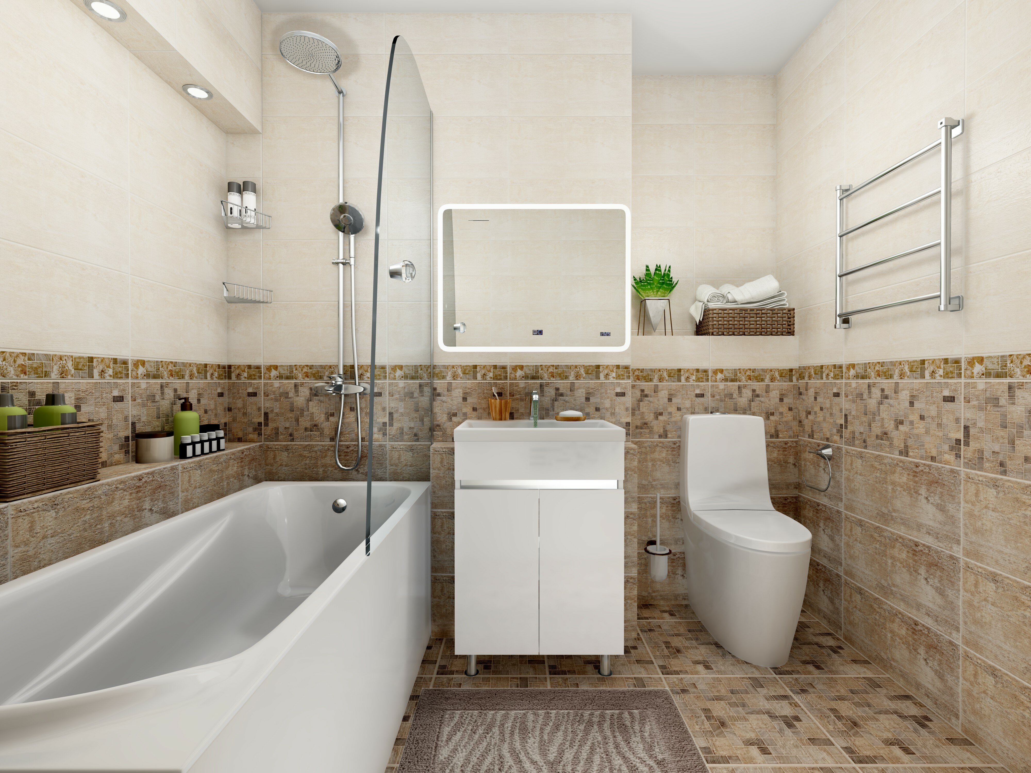 Эстетичная плитка Нефрит-Керамика Тоскана для отделки стен (габариты составляют 250 х 500 мм) идеально подходит для оформления небольших помещений. Плитка дает ровную и неброскую окраску стен - она выполнена в спокойных бежевых тонах.