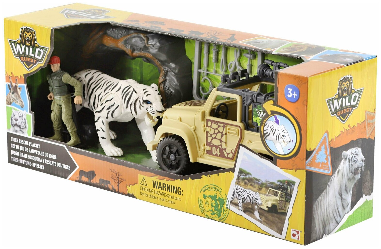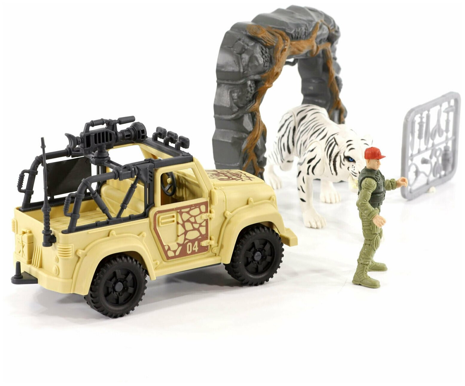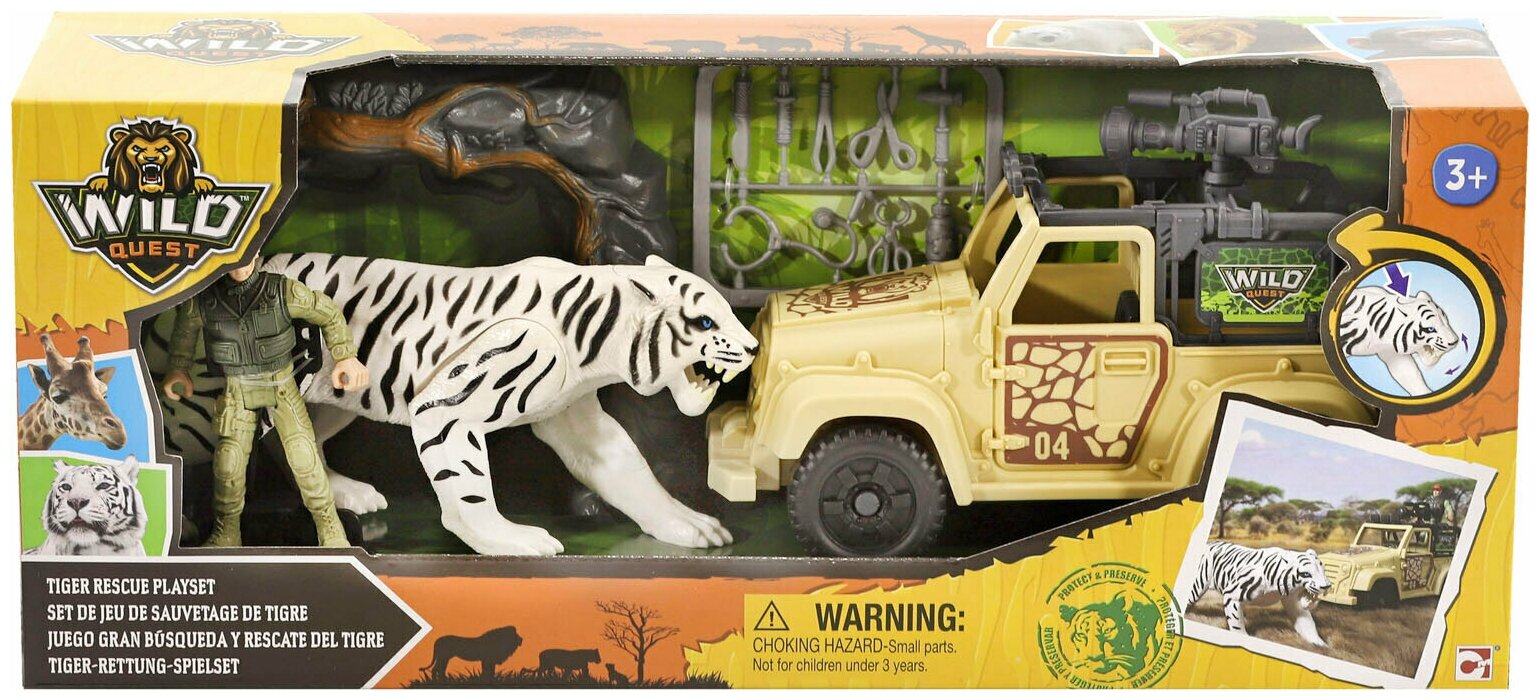 | Состав набора | Джип, подвижная фигурка зоолога, фигурка белого тигра, фигурка берлоги, аксессуары |