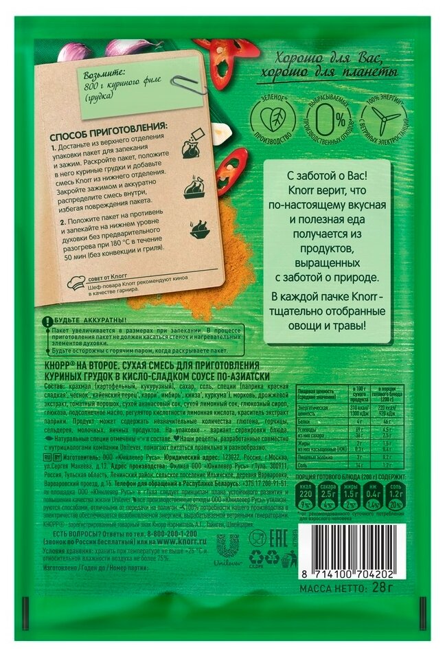 Приправа Knorr "На второе" Куриные грудки в кисло-сладком соусе по-азиатски 28гр (67990257)