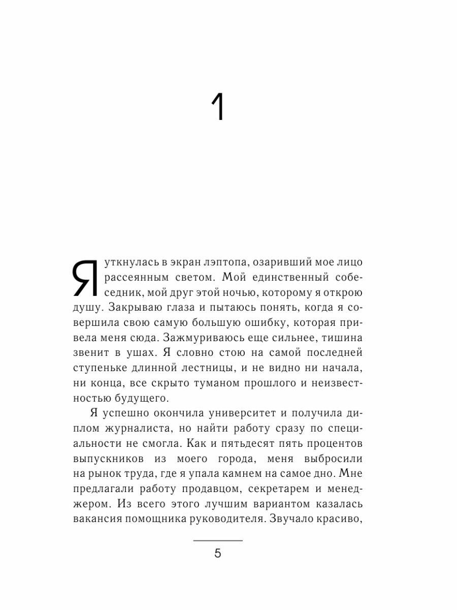 Юная девушка, которая начинает разочаровываться в своих мечтах единственную отдушину находит в небольшом блоге, который она ведет, по сути, для себя, и однажды нелепая случайность приводит ее к бесконечным тревогам, иллюзорной славе, и совершенно новым свершениям, которые еще только предстоят ей. Роман разделен на части, озаглавленные именами героев. Здесь и бывший муж, и демонический возлюбленный с неясной перспективой на будущее, строящий из себя сильного человека, и властный поклонник, настоящий уверенный в себе взрослый мужчина, и, наконец, она сама – перед выбором собственной Судьбы. Жизнь такая, какой ее делаешь – неплохой посыл для тех, кто еще неуверен в себе. -