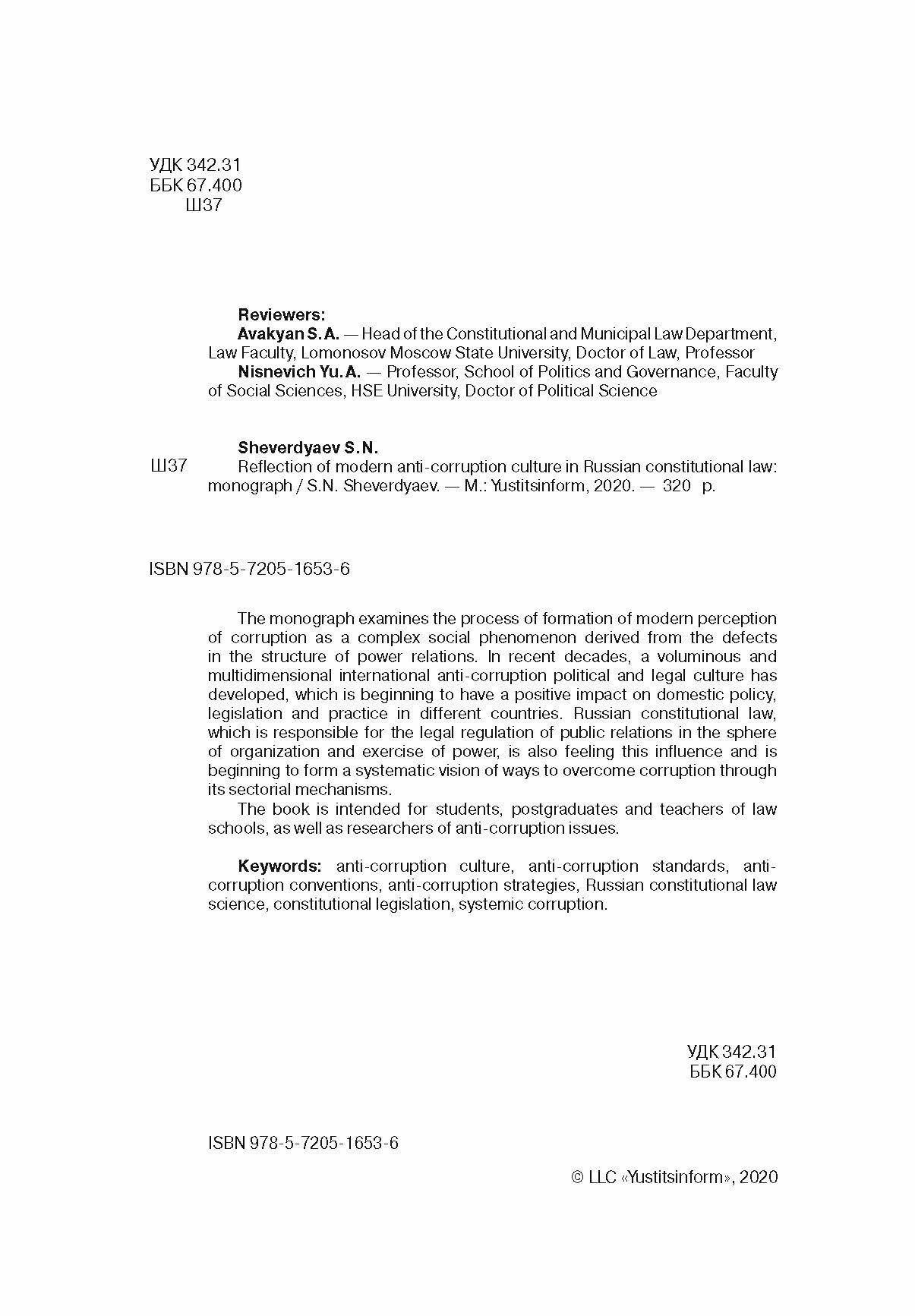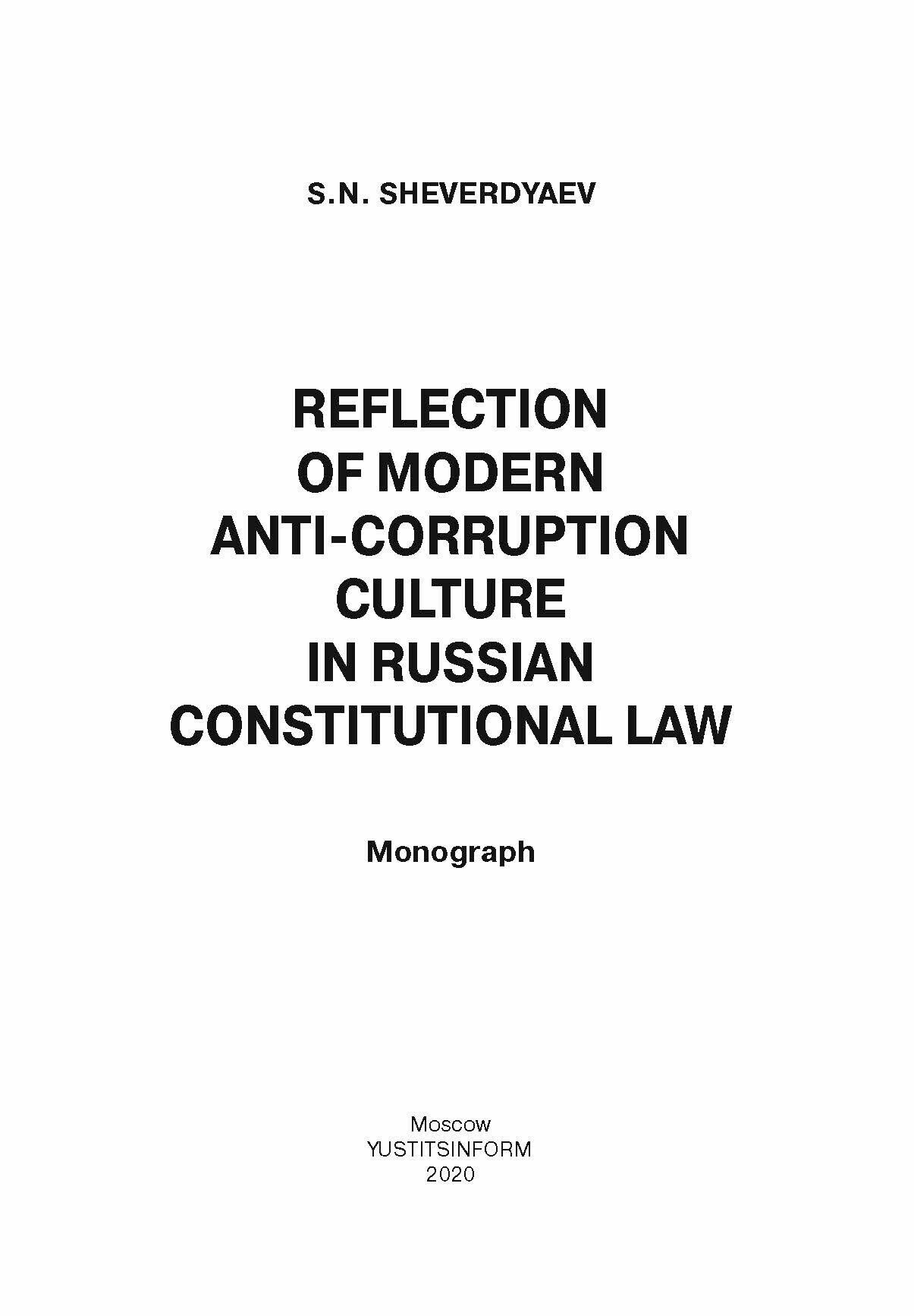 Отражение современной антикоррупционной культуры в российском конституционном праве (С. Н. Шевердяев); Юстицинформ, 2020