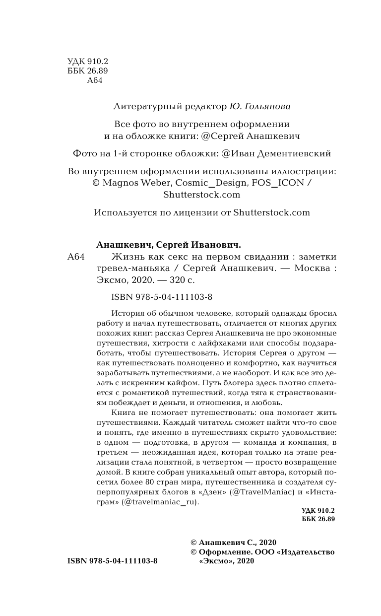 Жизнь как секс на первом свидании. Записки Тревел-Маньяка (Анашкевич Сергей Иванович); ООО "Издательство "Эксмо", 2020