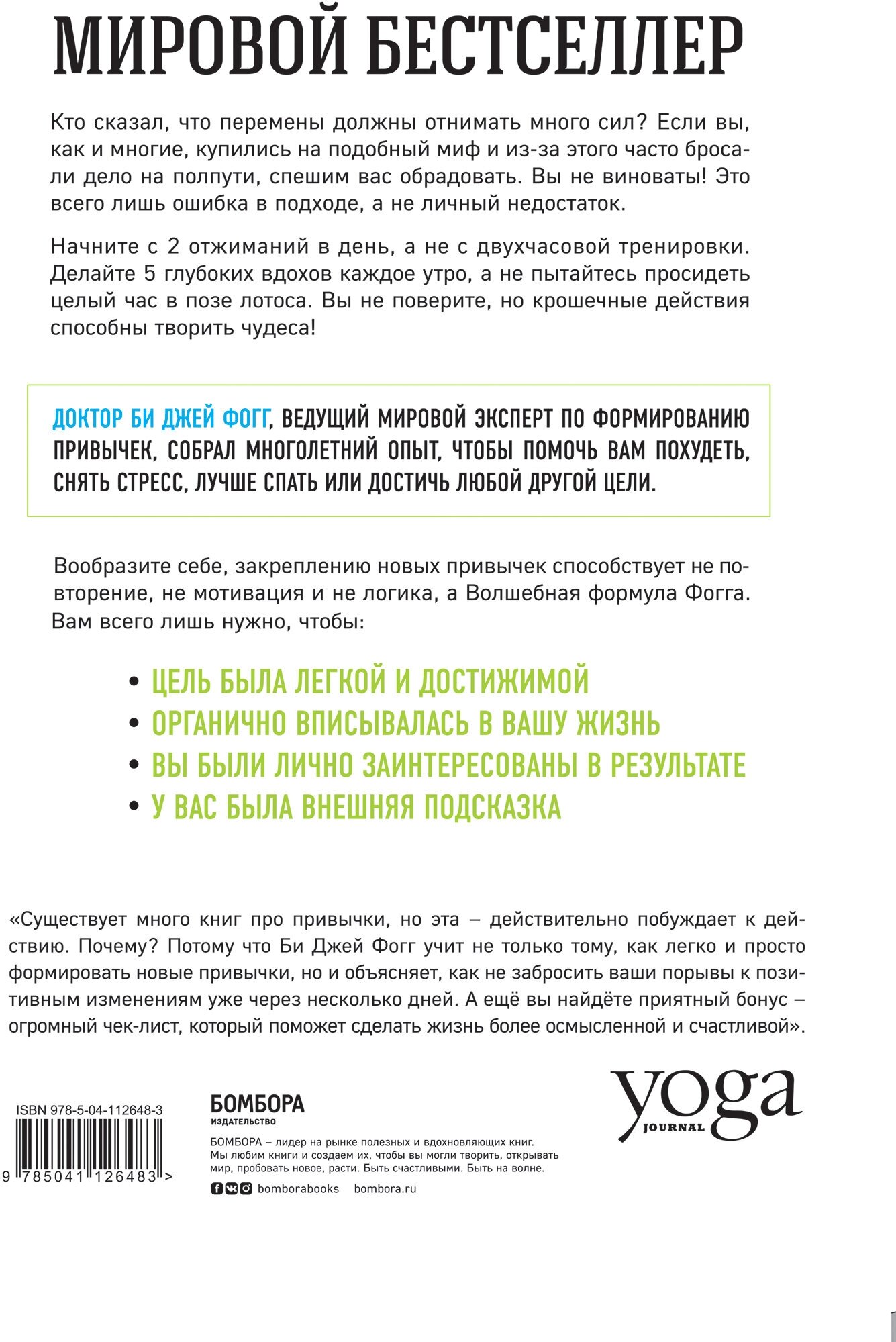 Доктор Би Джей Фогг, ведущий мировой эксперт по формированию привычек собрал многолетний опыт, чтобы помочь вам похудеть, снять стресс, лучше спать или достичь любой другой цели.