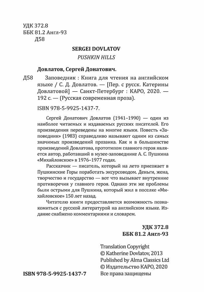 Pushkin Hills / Заповедник. Книга для чтения на английском языке (Сергей Довлатов); КАРО, 1983