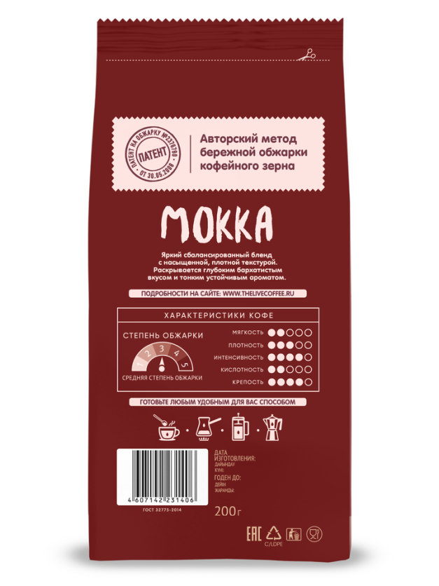 Кофе молотый Живой Mokka Африка 200г ЖК Холдинг