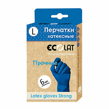 Перчатки EcoLat Хозяйственные латексные синие размер L 6шт 72326/L