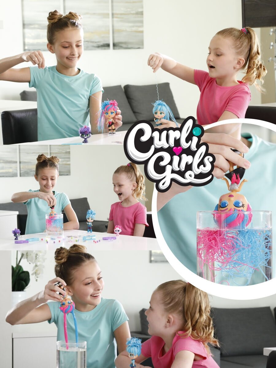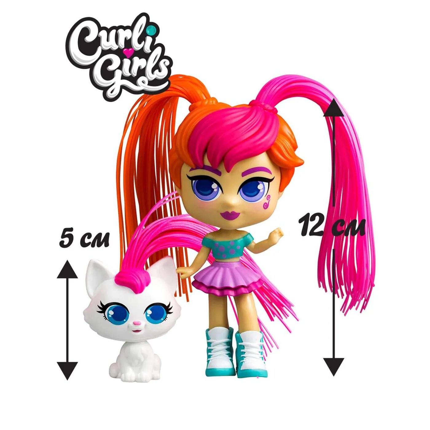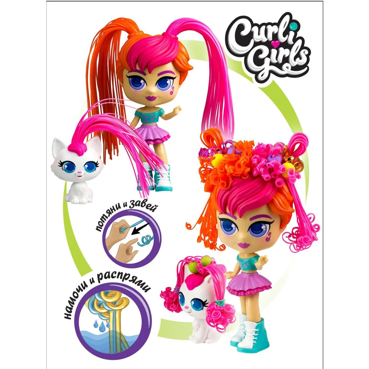 Curli Girls Кукла Именинница Мейли с белым котёнком Лулу - коллекционная история кукол для девочек от 3-х до 10 лет. КЁРЛИ ГЁРЛС - это девчонки-подружки, которые обожают делать различные стильные и интересные прически, используя силу своих кудряшек. Потяни за локон, завей кудряшку, используй различные аксессуары - заколки, резинки, бусинки, спиральки, придумывай все новые и новые образы. Можно создавать уникальные и неповторимые прически: сделай Чарли крупные локоны, а Хейли мелкие кудряшки, Келли любит высокие хвостики, а Бейли озорные косички! Придумай образ для каждой из подружек, а потом просто прополощи волосы в тёплой воде, и произойдёт чудо - они снова выпрямятся для создания новых волшебных и необычных причёсок. Ощути силу кудряшек с КЁРЛИ ГЁРЛС! У Мейли завтра День рождения, ей и ее котёнку Лулу надо хорошенько подготовиться. Помоги им придумать и создать яркие образы и прически для завтрашнего праздника. В набор входит: кукла – 1 шт., фигурка питомца – 1 шт., зажим для завивки – 1 шт., выпрямитель для прядей – 1 шт., индикатор температуры – 1 шт., бусинки – 6 шт., резинки для прядей – 6 шт., заколка – 1 шт., спиральки для волос – 2 шт., подставка для куклы – 1 шт., инструкция – 1 шт.