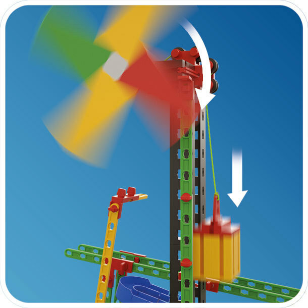 Небольшой толчок вызывает землетрясение в комнате вашего ребенка. С помощью этого конструкторского набора дети могут создать собственную модель цепной реакции, где каждый предмет fischertechnik вызывает ее. Когда груз падает на тарелку, она отправляет шарик катиться по увлекательному маршруту, пока не попадет на строительный блок fischertechnik, вызывая эффект домино, который заставляет запустить катапульту Это лишь некоторые реакции, которые доставляют вашему ребенку множество незабываемых эмоций.