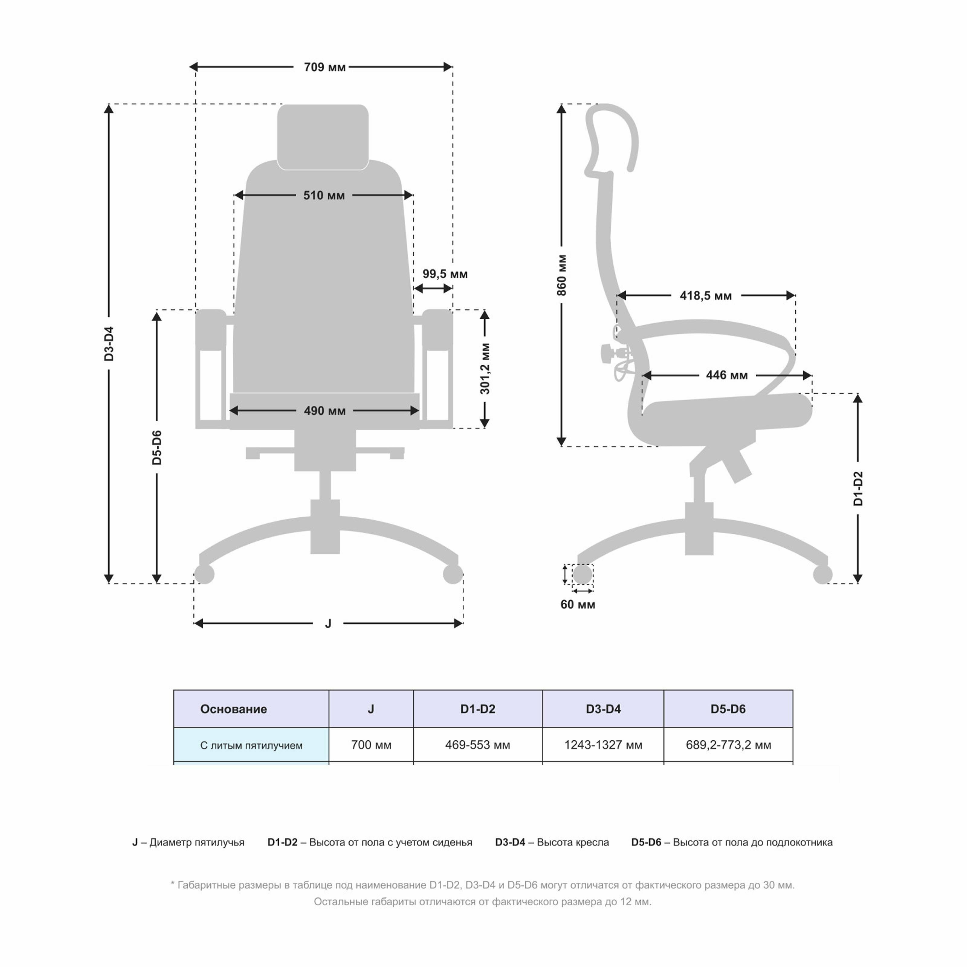 Высота сиденья в верхнем и нижнем положении может быть изменена, в зависимости от модели применяемого газ-лифта.